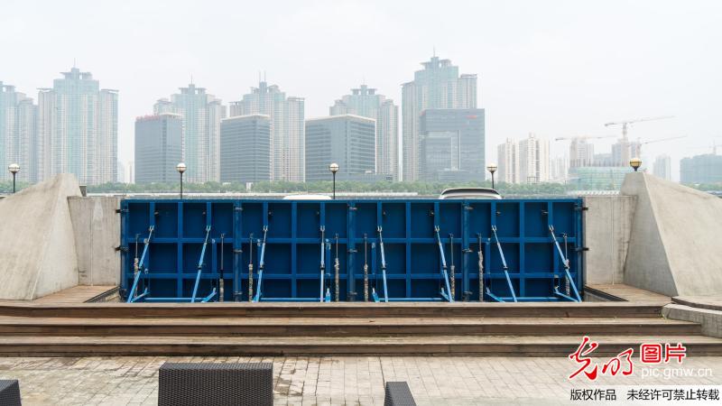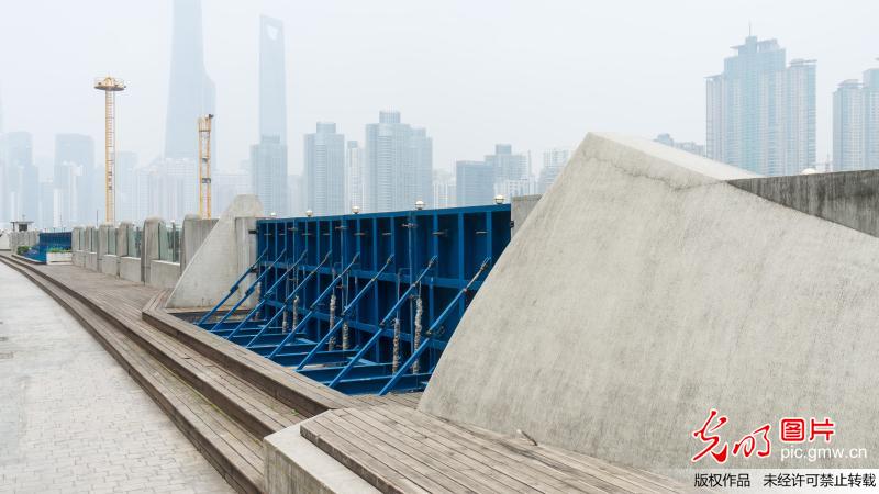 “抗洪神器”現(xiàn)身外灘 專(zhuān)家稱(chēng)安全過(guò)關(guān)暫不擴(kuò)建(王岡攝/光明圖片)