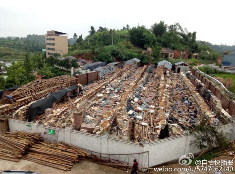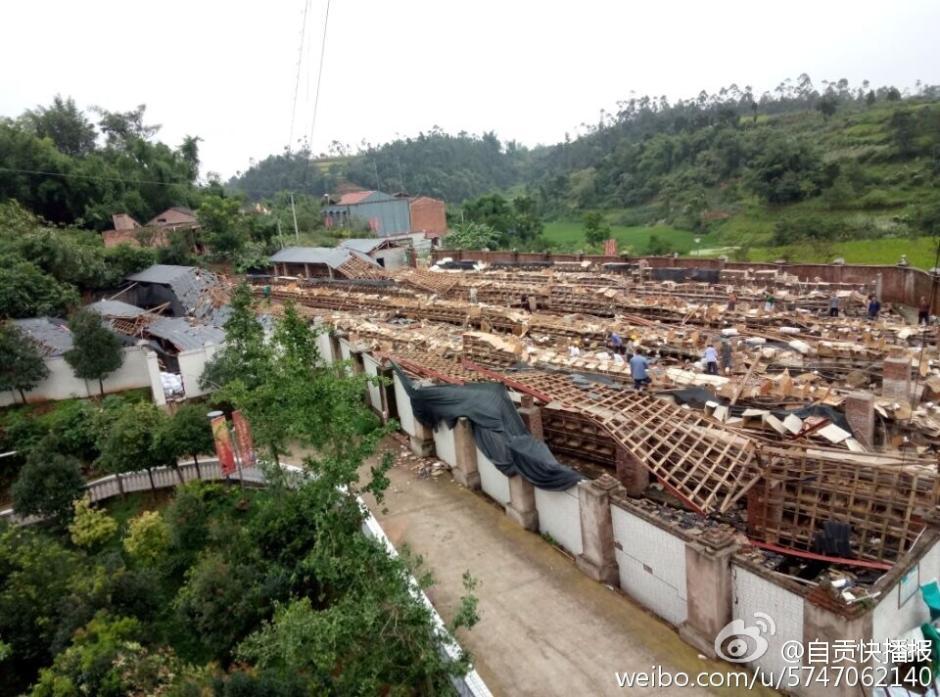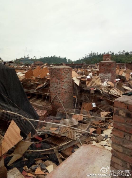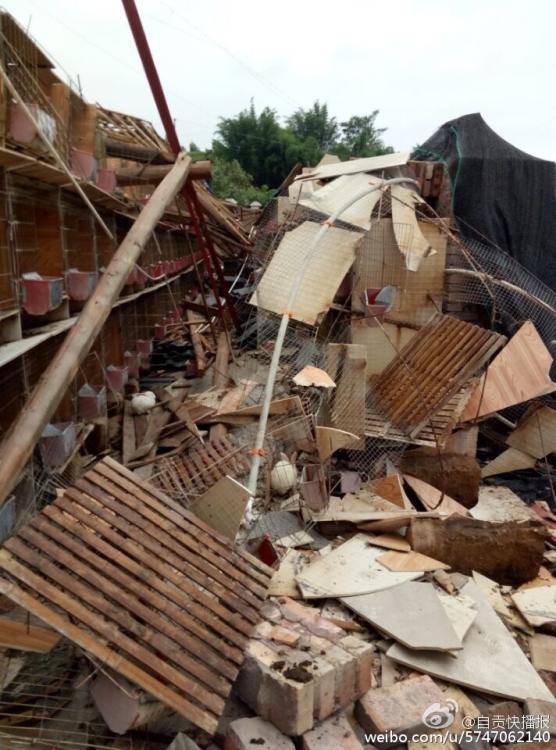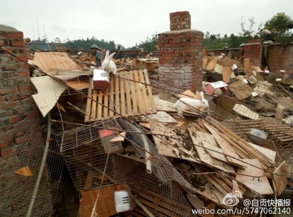 7月12日凌晨5時許,陣性大風(fēng)突襲四川自貢榮縣古文鎮(zhèn),風(fēng)災(zāi)使古文鎮(zhèn)山邊村鄉(xiāng)巴佬養(yǎng)殖基地6000平米兔舍垮塌,事發(fā)時,該兔舍共有26000只兔子。記者在現(xiàn)場看到,兔舍頂棚已經(jīng)被完全吹跨,木制橫梁和隔板隨處散落,部分兔舍仍有大量兔子被埋,10余名工人正在清理現(xiàn)場和搶救活兔。據(jù)兔舍負(fù)責(zé)人介紹,經(jīng)過近30多小時生產(chǎn)自救已搶救出5000余只活兔,初步估計有10000余只兔子死亡,直接損失超過300萬元。(記者 曹實秋)圖片來源:華西都市報自貢城市頻道官方微博