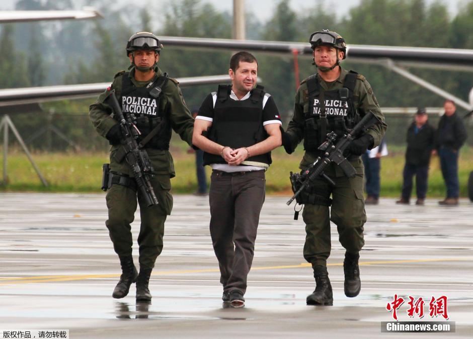 7月28日消息,哥倫比亞大毒梟丹尼爾·巴雷拉因在全世界販賣數百噸可卡因被判35年監(jiān)禁。巴雷拉曾世界最大毒梟之一為了掩蓋身份便于跑路,他多次整容,并毀掉了指紋和部分掌紋,簡便如此煞費苦心依然被警方拘捕。圖為2013年7月9日巴拉雷在機場被引渡至美國波哥大。