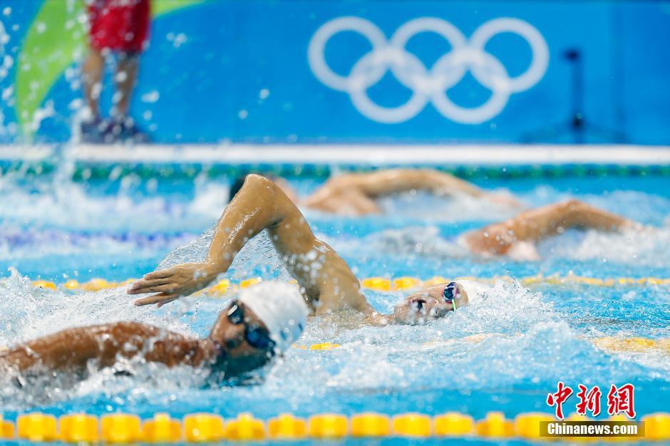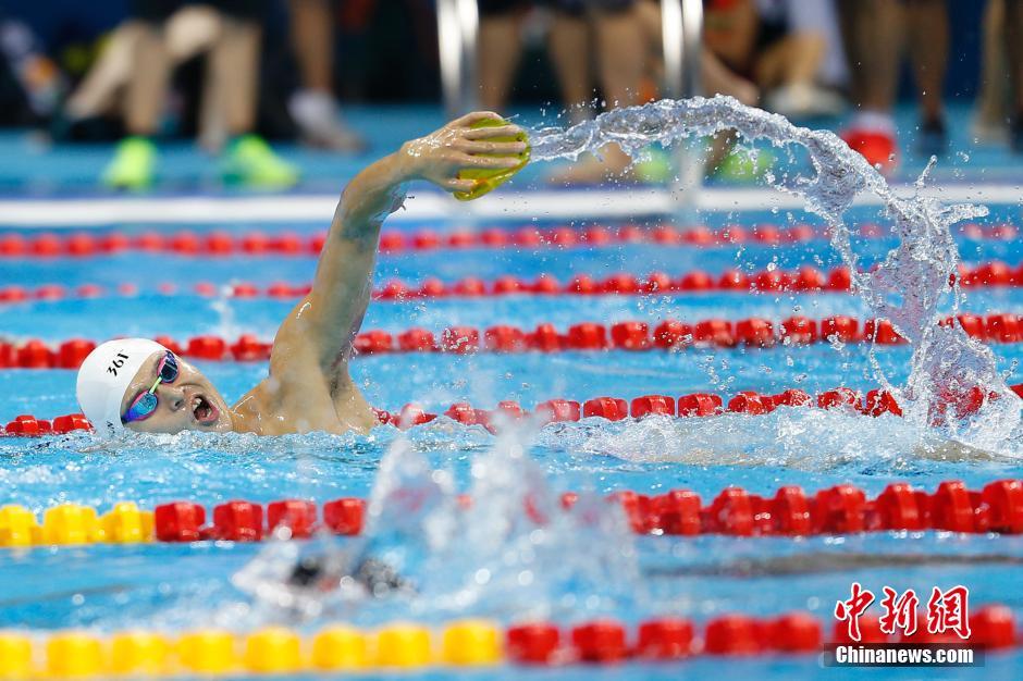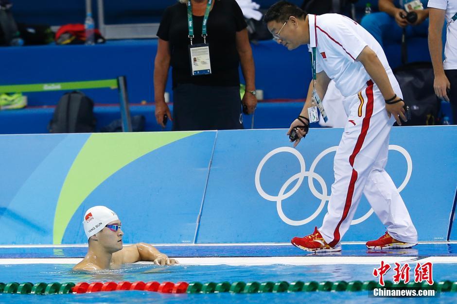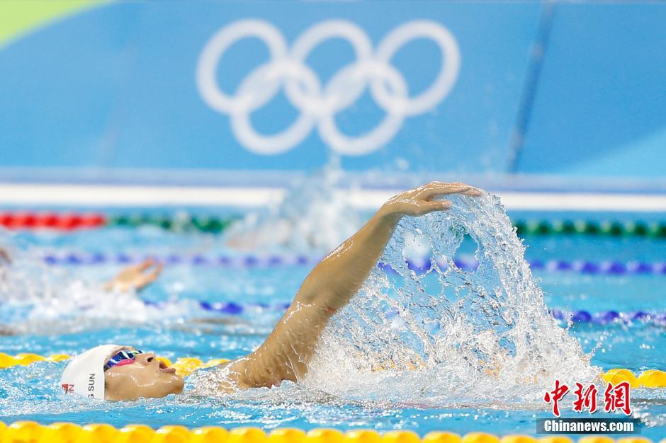 當(dāng)?shù)貢r(shí)間8月4日,里約奧林匹克水上項(xiàng)目體育館,中國(guó)游泳選手孫楊在泳池內(nèi)進(jìn)行賽前訓(xùn)練。中新網(wǎng)記者 盛佳鵬 攝