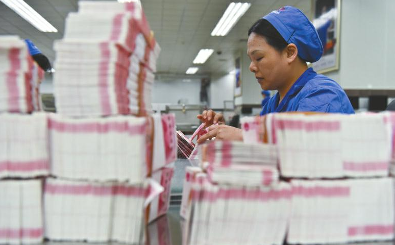 成鈔公司大門口,緊握槍支的武警駐守,在這里,有著嚴密的安檢措施。在經(jīng)過層層申報審批,暫存隨身攜帶的手包和手機后,記者獲批進入生產(chǎn)車間。瞬間,靜謐被機器的轟鳴代替。在車間內(nèi),穿著藍色工裝的工人正有序忙碌著。在這里經(jīng)過多道印鈔工序及干燥、檢驗等環(huán)節(jié)后,一張張雪白的印鈔紙“搖身一變”,成為紅紅綠綠的鈔票,整個過程前后需要耗時1個月左右。