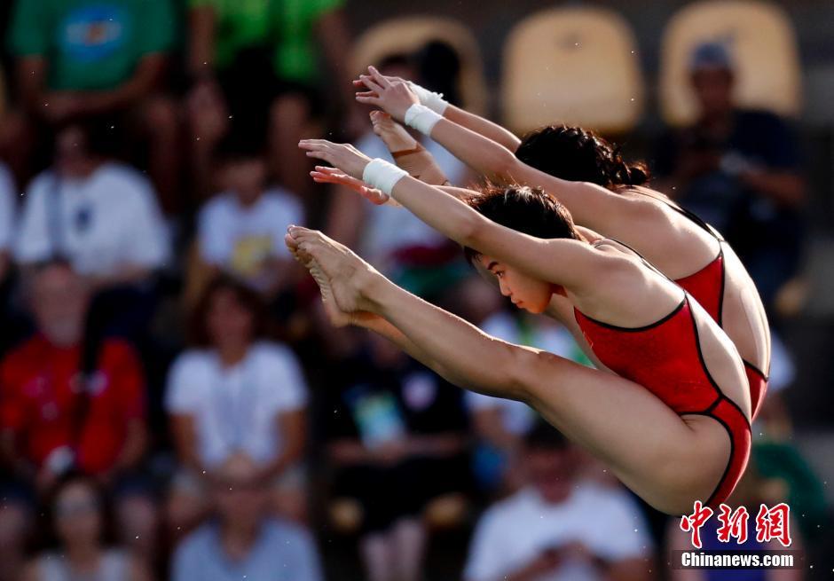 當(dāng)?shù)貢r間8月9日,2016里約奧運跳水女子雙人十米臺,中國選手陳若琳/劉惠瑕以354.00分獲得冠軍。這也是陳若琳收獲的第五枚奧運金牌。中新網(wǎng)記者 杜洋 攝