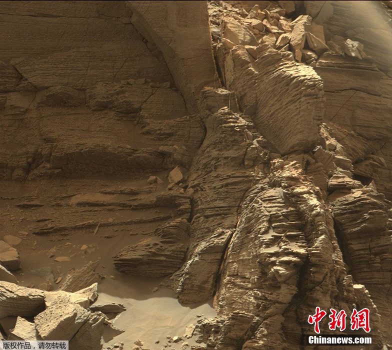 NASA形容,“好奇號(hào)”仿佛進(jìn)行了一趟“橫越美國(guó)沙漠的公路之旅”。影像中,火星上有著與地球景觀相似的崎嶇山壁。