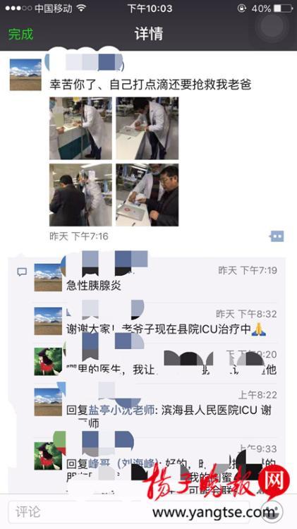 記者聯(lián)系上微信好友劉海峰,他告訴記者,昨天晚7點左右,他老爸重因病去濱海縣人民醫(yī)院搶救,進入重癥病房后,跟著一名護士去喊醫(yī)生,看到一名男醫(yī)生坐在辦公室的看病歷?!拔液唵握f了一下爸爸的病情,他立刻推著掛著點滴的架子跑了出來。”圖片來源:揚子晚報網(wǎng)