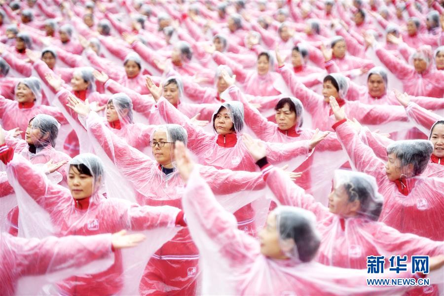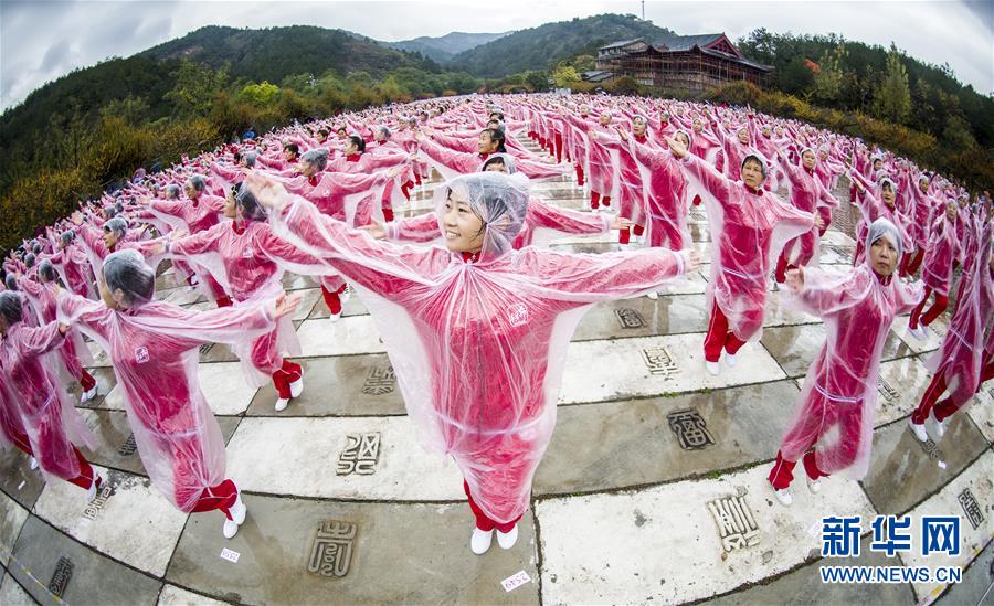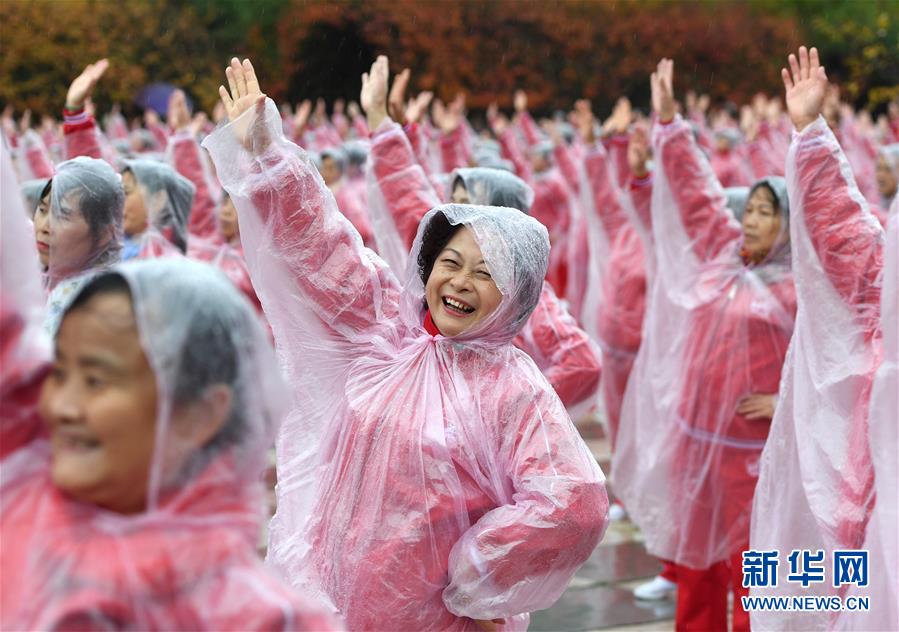 11月7日,在武漢黃陂云霧山,廣場舞愛好者一同起舞。當(dāng)日上午,在天津、北京、上海、武漢、濟(jì)南等14個(gè)城市的不同場地上,50085人共同起舞,創(chuàng)下新的最大規(guī)模排舞(多場地)吉尼斯世界紀(jì)錄。新華社記者肖藝九攝