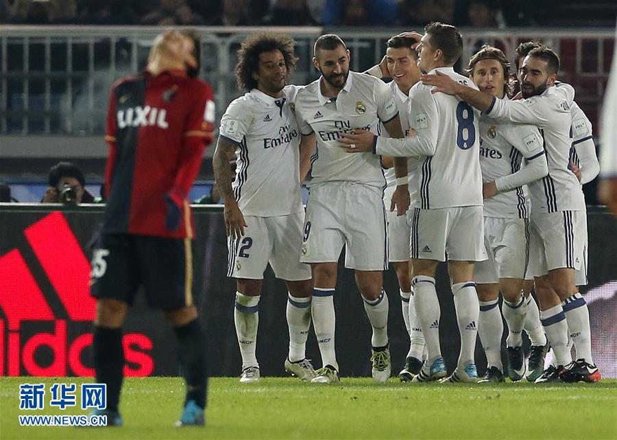 12月18日,皇家馬德里隊(duì)球員克里斯蒂亞諾·羅納爾多(中)進(jìn)球后與隊(duì)友慶祝。 新華社/美聯(lián)