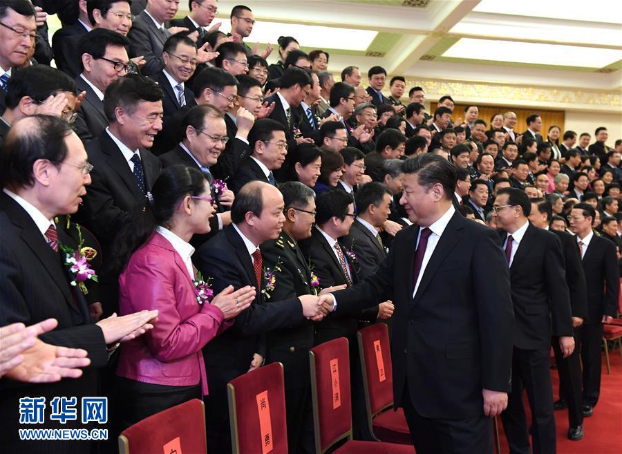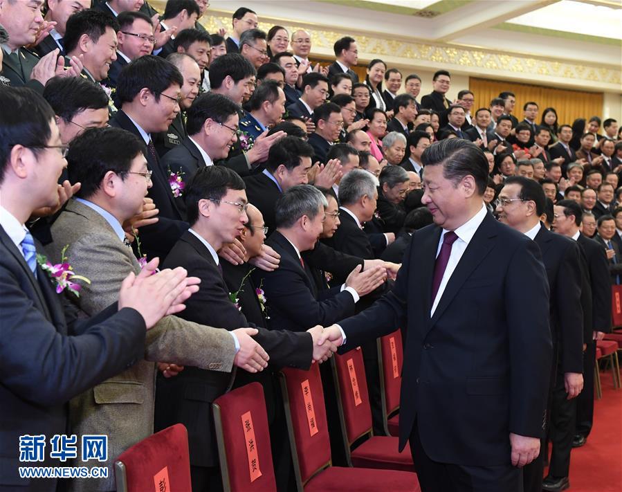 1月9日,2016年度國家科學技術(shù)獎勵大會在北京人民大會堂隆重舉行。黨和國家領(lǐng)導人習近平、李克強、劉云山、張高麗等出席大會并為獲獎代表頒發(fā)獎勵證書。會前,習近平等黨和國家領(lǐng)導人會見獲獎代表。新華社記者 李學仁 攝