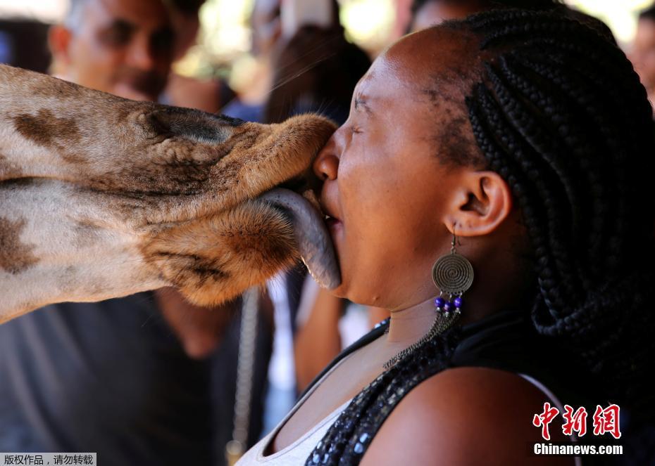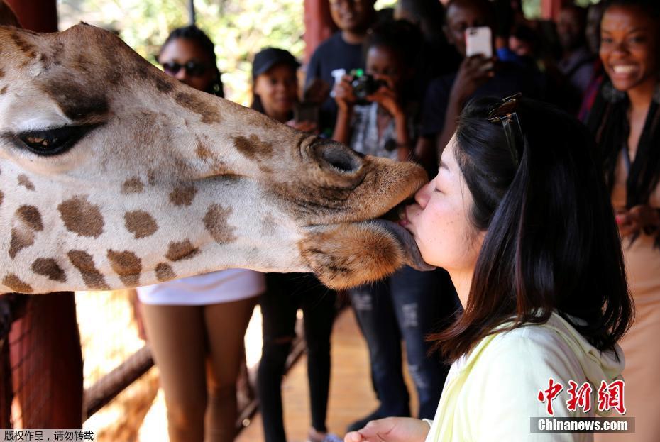 當(dāng)?shù)貢r(shí)間1月15日,肯尼亞內(nèi)羅畢的一個(gè)動(dòng)物園內(nèi),游客用嘴喂食長(zhǎng)頸鹿,人與動(dòng)物親密接觸,其樂(lè)融融。