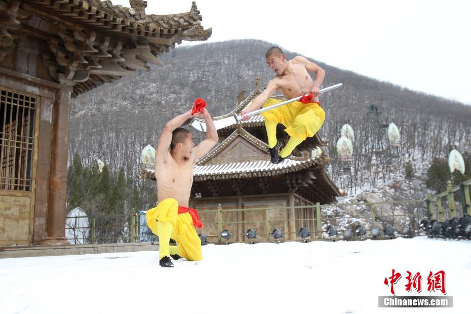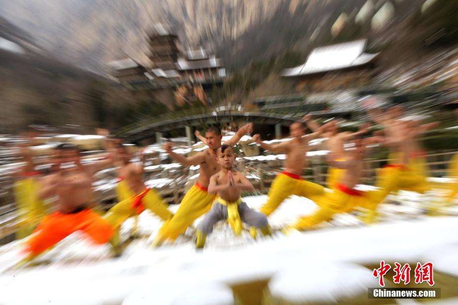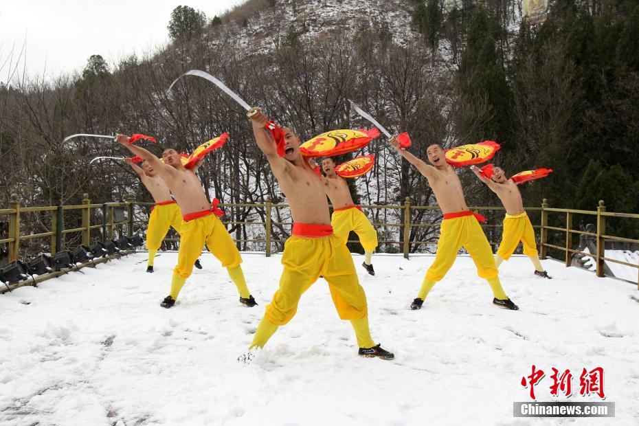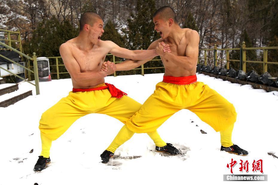 2月22日,河南出現(xiàn)暴雪天氣,氣溫驟降,少林寺所在地登封嵩山白雪茫茫,銀裝素裹,武僧們赤膊上身在冰天雪地里苦練少林功夫。盡管寒風(fēng)刺骨,少林武僧們依舊照常練功,只見他們赤膊上陣,不懼寒冷,在雪窩里扎馬步、練少林棍、刀槍對戰(zhàn)。他們中間最小的只有6歲。 中新社記者 王中舉 攝