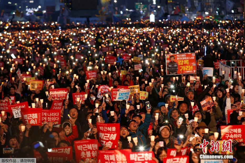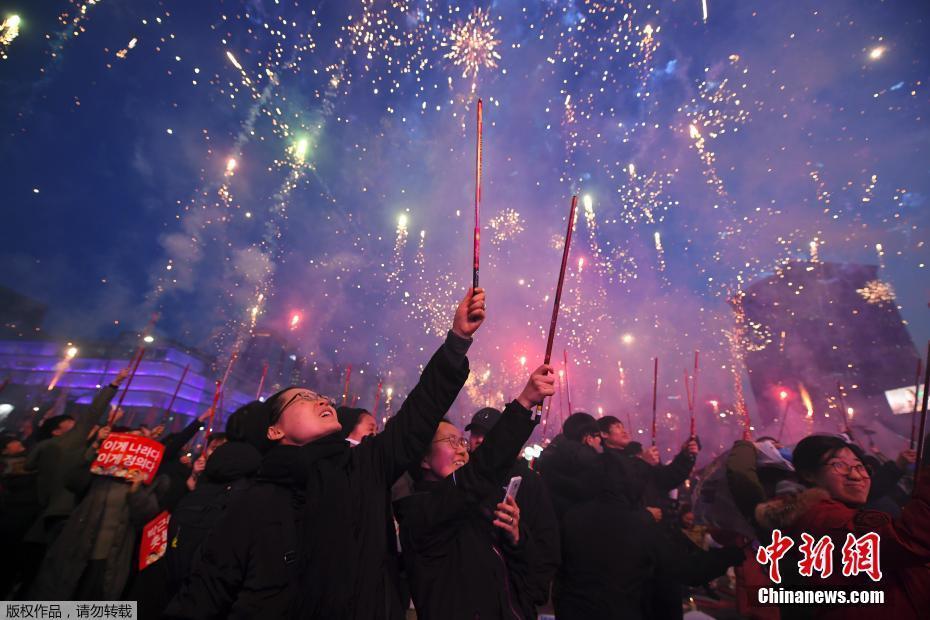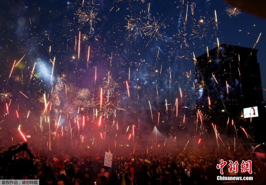 當地時間2017年3月11日,韓國首爾,民眾慶祝樸槿惠被彈劾下臺,并要求拘捕樸槿惠。韓國憲法法院10日通過前總統(tǒng)樸槿惠彈劾案后,樸槿惠正式下臺,但她目前仍留在青瓦臺官邸內,未有公開露面或發(fā)表聲明。知情人士透露,樸槿惠得悉法院裁決后,精神大受打擊,需要時間平復心情,分析認為她至今仍未就裁決表態(tài),是“沉默抗議”裁決。