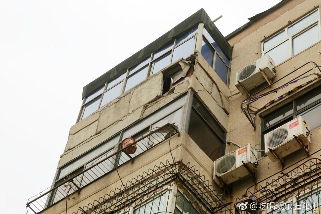 2017年3月12日,鄭州遭遇5級(jí)以上大風(fēng)襲擊,只聽(tīng)“咚”“咚”幾聲,紅專路附近一棟居民樓的陽(yáng)臺(tái)因年久失修,發(fā)生大面積的倒塌。