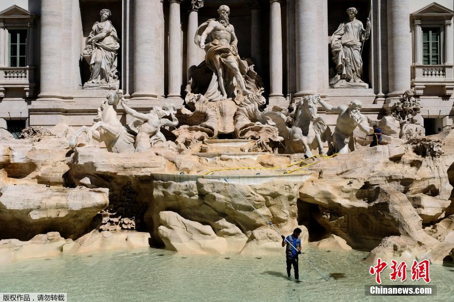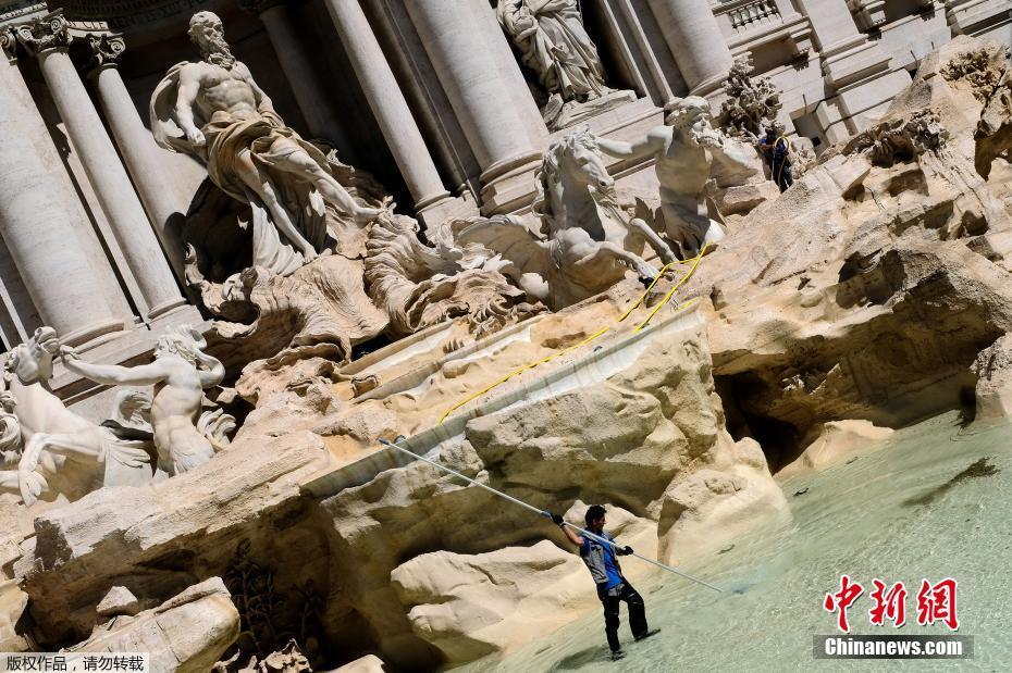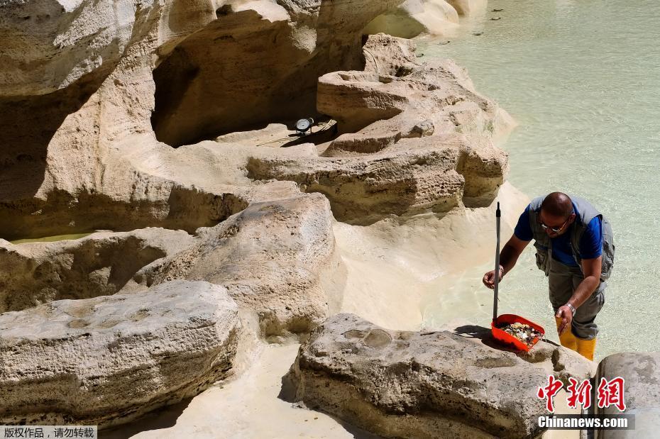 當(dāng)?shù)貢r(shí)間2017年5月2日,意大利羅馬,一名工人在特萊維噴泉里收集硬幣。每年從噴泉里收集到的硬幣大約價(jià)值100萬(wàn)歐元。