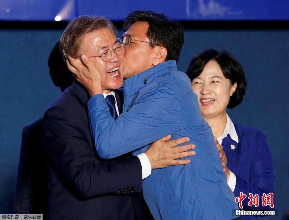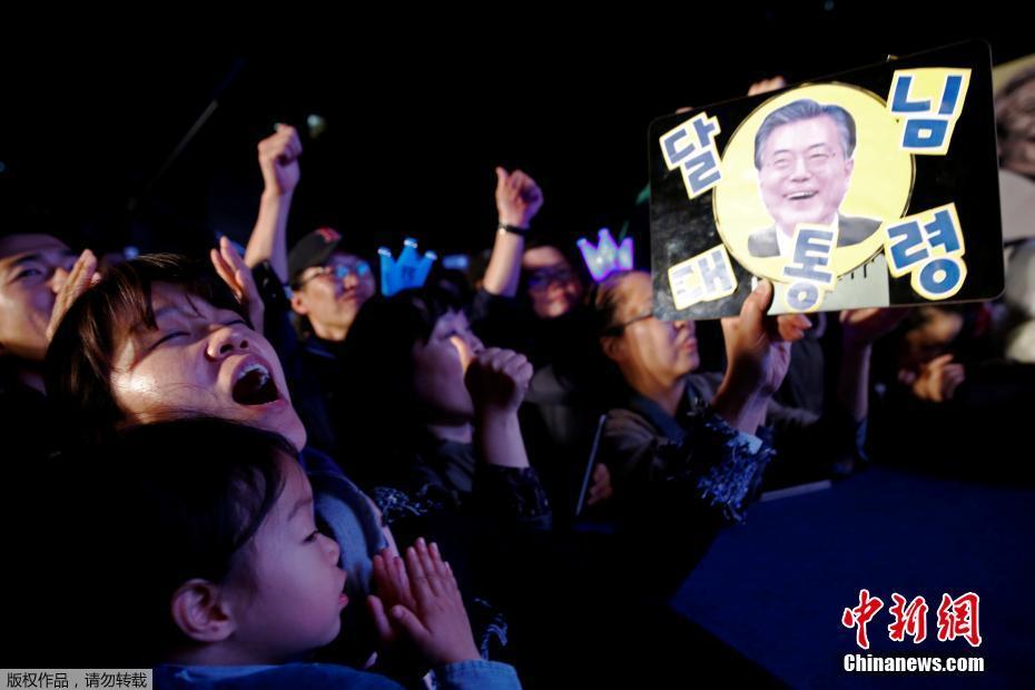 當?shù)貢r間5月9日深夜,韓國第19屆總統(tǒng)選舉共同民主黨候選人文在寅及其競選團隊現(xiàn)身首爾光化門廣場,發(fā)表“勝選演說”,與支持民眾握手慶祝。據(jù)出口民調(diào)顯示,文在寅在當日進行的大選投票中以41.4%的支持率絕對優(yōu)勢勝選。在選舉管理委員會公布的大部分開票結(jié)果中,文在寅得票率也遙遙領(lǐng)先,提前鎖定勝局。