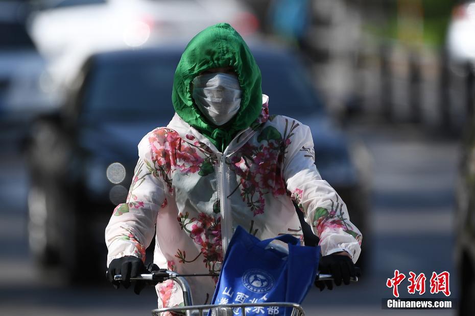 5月17日,山西太原,民眾在烈日下“全副武裝”出行。據(jù)中央氣象臺消息,17日-19日,北方多地將遭遇今年以來首次大范圍高溫天氣,涉及京津冀、內(nèi)蒙古等7省市區(qū),其中18日高溫范圍最廣、強(qiáng)度最大,內(nèi)蒙古東部偏南地區(qū)局地更有可能出現(xiàn)38-40℃的最高氣溫。武俊杰 攝