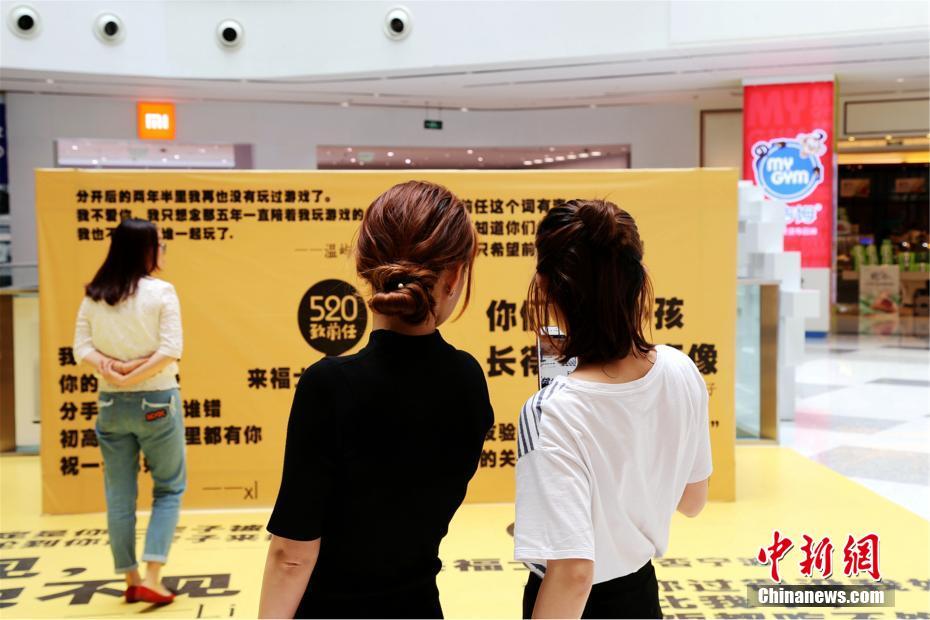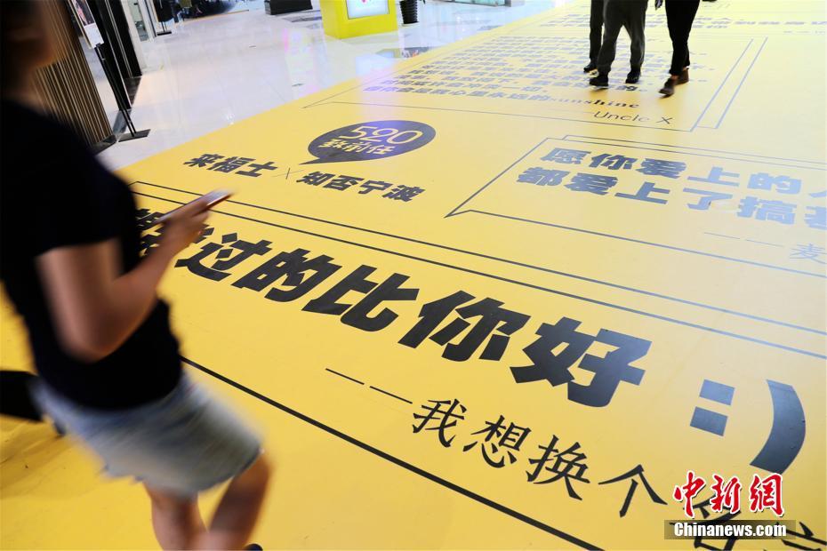 5月18日,在浙江寧波某商場(chǎng)內(nèi),近百條“致前任”留言貼滿了墻壁和地面,引發(fā)不少市民駐留圍觀。據(jù)工作人員介紹,這些句子來(lái)自網(wǎng)絡(luò)征集,最終篩選了99名網(wǎng)友留言,希望在“520”這一網(wǎng)絡(luò)情人節(jié)中,引發(fā)人們對(duì)愛(ài)的共鳴。尤勤勇 攝