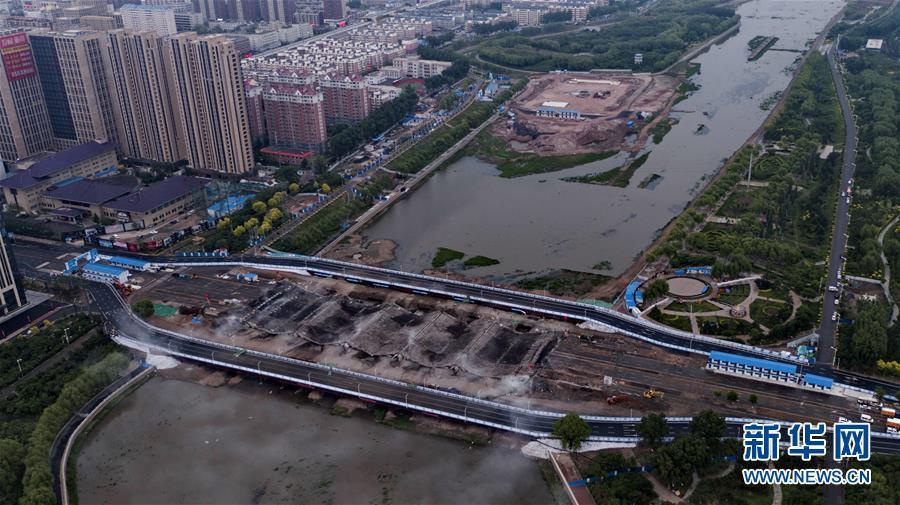 5月31日,長(zhǎng)春自由大橋在進(jìn)行橋面爆破。新華社記者 張楠 攝