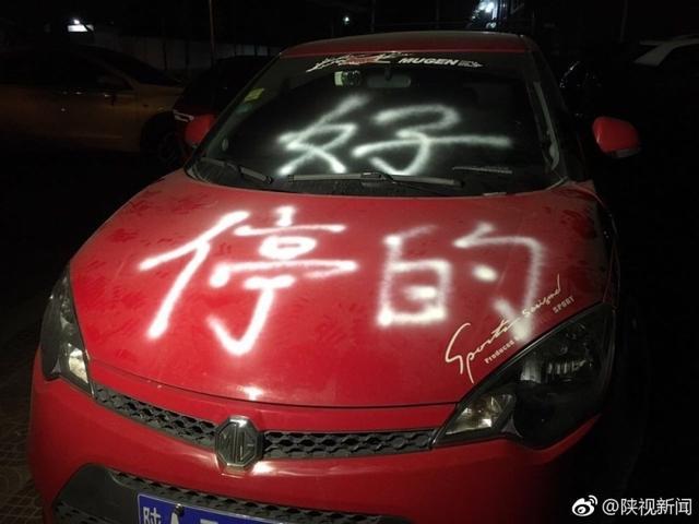 男子到西安方新路吃飯,因為沒車位就把車停在道沿中間,擔(dān)心自己的車會擋別人道,他專門留下了聯(lián)系方式??墒浅酝晖盹埡笏氐杰嚫皡s看到自己的車被人噴了漆,寫了三個字“停的好”。