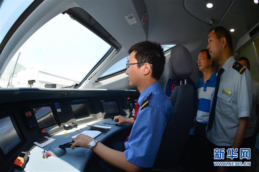 技術(shù)人員在寶蘭高鐵高速綜合檢測(cè)列車(chē)司機(jī)室作業(yè)(5月16日攝)。
