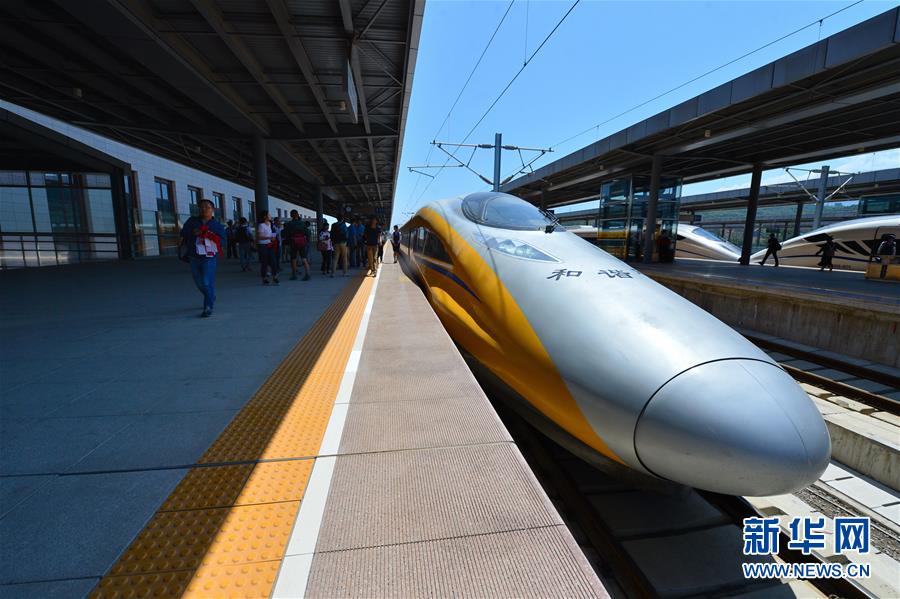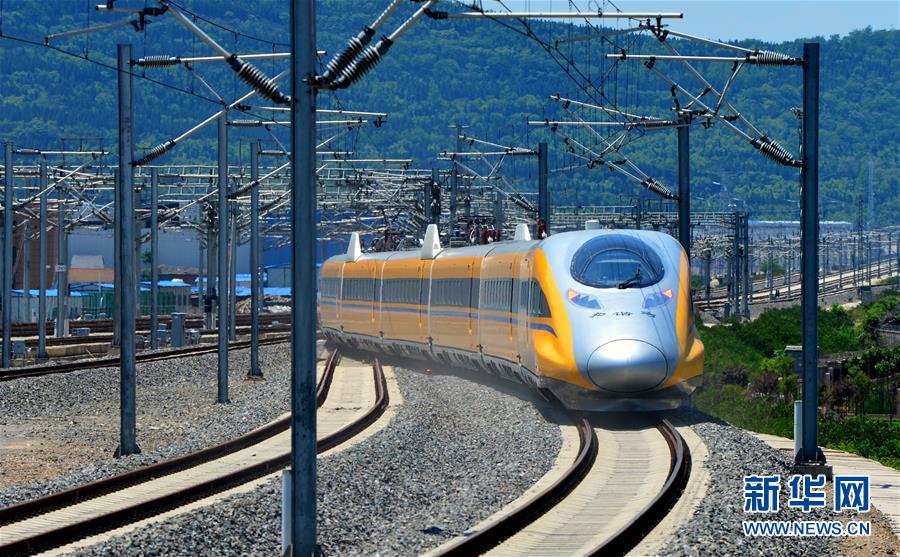 一列高速綜合檢測(cè)列車(chē)??繉氹u南站(5月16日攝)。