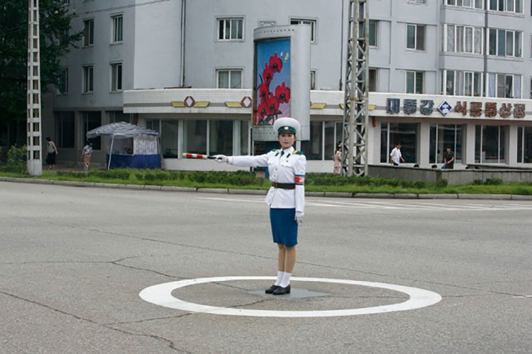 平壤站內(nèi)正在等待地鐵的一位站長。