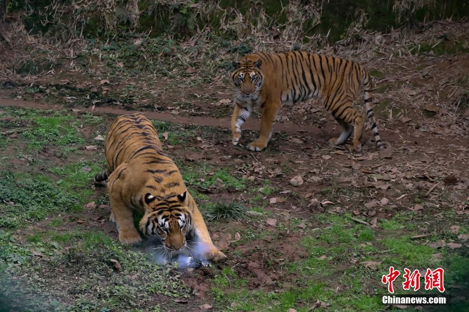 12月2日,有航拍愛(ài)好者在重慶樂(lè)和樂(lè)都野生動(dòng)物世界虎區(qū)用無(wú)人機(jī)拍攝老虎(經(jīng)景區(qū)許可后在安全監(jiān)護(hù)下拍攝),不料在飛到距離地面約三米高度時(shí),一頭老虎迅速跳躍起來(lái),一掌將無(wú)人機(jī)擊落。王成杰 攝
