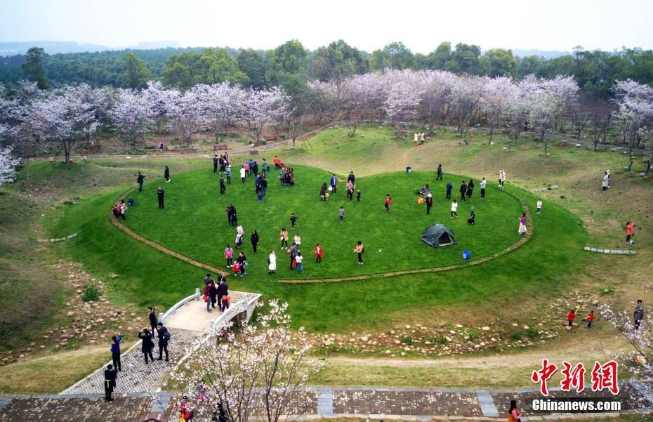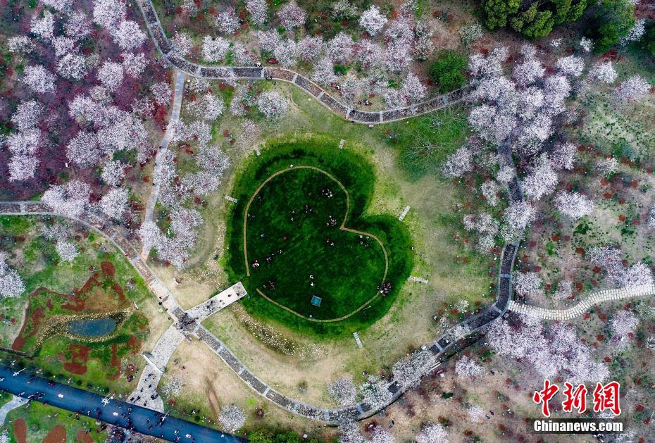 3月17日,游客在江西南昌鳳凰溝景區(qū)游玩。連日來,江西南昌鳳凰溝萬株櫻花盛放,形成延綿萬米的櫻花隧道,場(chǎng)面極為壯觀,前來賞花的游人絡(luò)繹不絕。圖為“心形”草坪與櫻花交相輝映,畫面十分唯美。