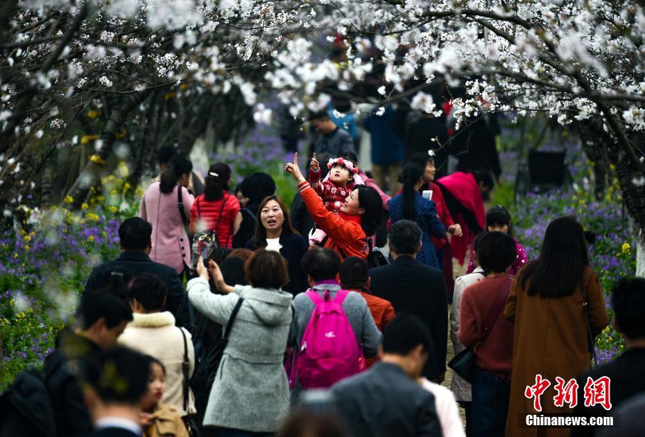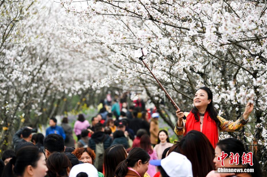 江西南昌鳳凰溝櫻花盛放,形成延綿萬米的櫻花隧道,場(chǎng)面極為壯觀,游人絡(luò)繹不絕。 鮑贛生 攝