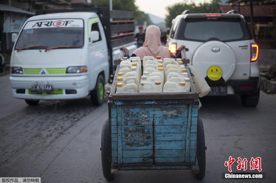 Mama Hasria拉著潔凈的飲用水到鎮(zhèn)上售賣(mài)。