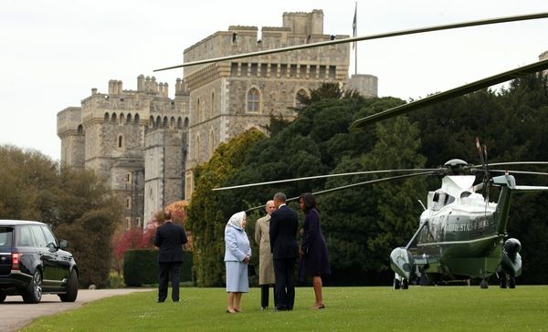 女王夫婦在溫莎城堡款待了奧巴馬夫婦,四人共進(jìn)午餐。