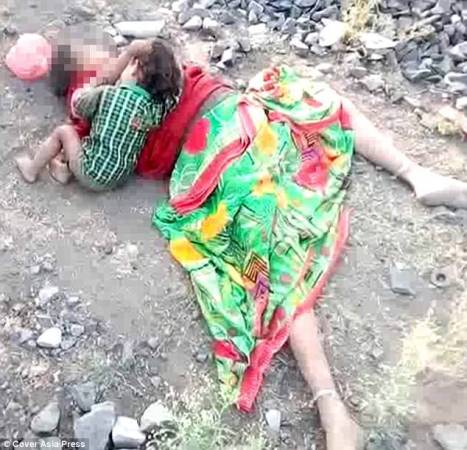 2017年5月25日?qǐng)?bào)道,印度中央邦,當(dāng)?shù)鼐旖拥綀?bào)警稱(chēng),在鐵軌附近發(fā)現(xiàn)一具尸體。當(dāng)警察趕到現(xiàn)場(chǎng)時(shí)發(fā)現(xiàn),一名17個(gè)月大的嬰兒趴在母親身上一邊痛哭,一邊正在試圖喝奶。