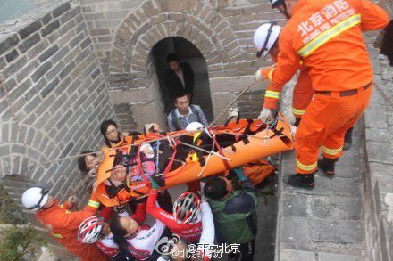 人民網(wǎng)北京10月21日電 據(jù)北京市公安局官方微博消息,昨日,北京消防接到報(bào)警稱一名游客被困野長城,到達(dá)現(xiàn)場(chǎng)后發(fā)現(xiàn)被困者是一名60歲左右外籍女游客,因踩到碎石不慎摔傷,多處骨折,右肩脫臼并有輕微腦震蕩。消防官兵利用軀體固定氣囊,將被困者固定。經(jīng)1個(gè)小時(shí)艱難跋涉,終將被困者送到山下。
