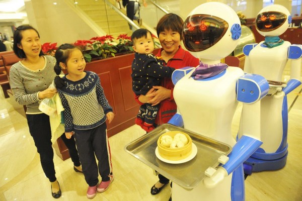 對(duì)于餐廳里這兩個(gè)服務(wù)員,就餐的顧客都倍感新鮮,從機(jī)器人手中接過食物后,都會(huì)和機(jī)器人合影?!袄习宓膭?chuàng)意特別好,給人耳目一新的感覺。我家孩子嚷著叫我也買一個(gè),每天在家里為我們服務(wù)。”顧客徐女士說。