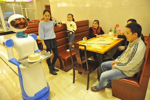 為什么會(huì)想到開一家機(jī)器人餐廳?盧迪鈳說,他原先是做電子商務(wù)的,因?yàn)樽龅貌缓?,他一直想轉(zhuǎn)行。一次上網(wǎng)時(shí),他看到昆山開了一家機(jī)器人餐廳,反響非常好。于是他去昆山進(jìn)行了考察。這次考察讓他下了決心,在家人的支持下,他開了這家機(jī)器人餐廳。盧迪鈳告訴記者,他們餐廳里的機(jī)器人會(huì)說40句基本用語(yǔ),如“你的菜到了,請(qǐng)慢用”等。他想下次編程的時(shí)候加入寧波話,讓機(jī)器人更親切。
