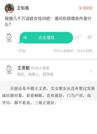 有網(wǎng)友代表幾千萬(wàn)適齡女性向王思聰發(fā)問(wèn),“你的擇偶標(biāo)準(zhǔn)是什么”,王思聰坦言:“說(shuō)實(shí)話,沒(méi)有考慮沒(méi)有想過(guò)這些問(wèn)題,首先我目前是不婚主義者,沒(méi)想過(guò)要結(jié)婚,交女朋友有交,但從沒(méi)想過(guò)發(fā)展成結(jié)婚對(duì)象,至于交女朋友標(biāo)準(zhǔn),其實(shí)沒(méi)什么標(biāo)準(zhǔn),我喜歡就好,我和一般傳統(tǒng)家庭或是老一代的人思想不太一樣,沒(méi)想過(guò)要門當(dāng)戶對(duì),高學(xué)歷啊,知書達(dá)理啊這些,都不是很看重,三觀正比較重要,再就是我喜歡,我看順眼就好,其他真的沒(méi)別的標(biāo)準(zhǔn)了?!?/p>