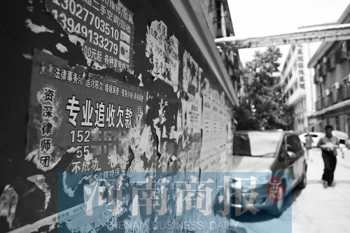 在鄭州的大街上,經(jīng)常會(huì)看到各種關(guān)于討債、調(diào)查的小廣告。