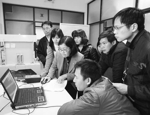 在河內(nèi),日本核專家對(duì)參加培訓(xùn)課程的越南學(xué)生進(jìn)行輔導(dǎo)。(世界新聞報(bào)圖片)