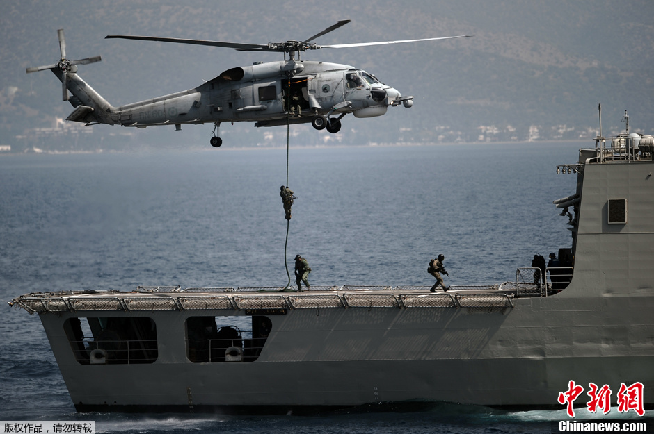 2012年4月6日,希臘特種部隊(duì)在愛琴海舉行軍事演習(xí)。