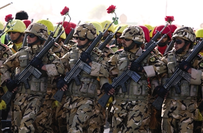 4月17日,德黑蘭,伊朗士兵參加閱兵儀式。當(dāng)日,伊朗多個城市舉行盛大閱兵。