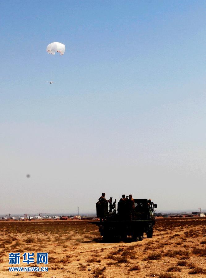 某型測(cè)繪無人機(jī)返回地面時(shí),自動(dòng)打開降落傘,空降到指定地域(4月16日攝)。新華社發(fā)(黃寶峰 攝)