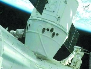 5月25日,“龍”飛船被安全固定在國際空間站的“和諧”號節(jié)點艙上。新華/法新