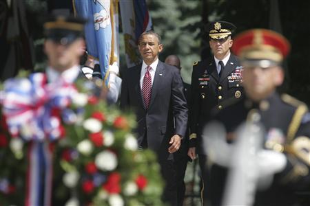 奧巴馬在阿靈頓國(guó)家公墓向陣亡士兵墓敬獻(xiàn)花圈