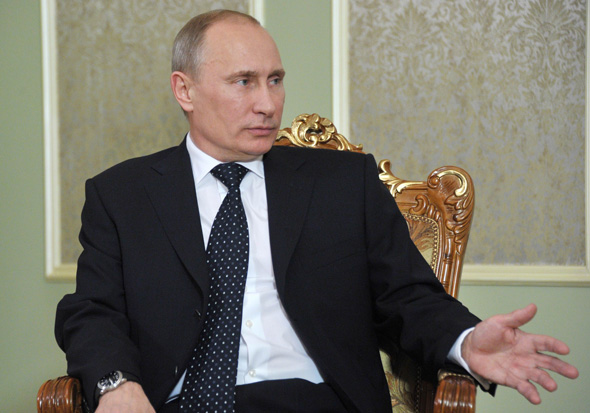2012年5月31日,在白俄羅斯首都明斯克,到訪的俄羅斯總統(tǒng)普京與白俄羅斯總統(tǒng)盧卡申科(不在畫面中)會(huì)談。當(dāng)日,新任俄羅斯總統(tǒng)普京抵達(dá)白俄羅斯,開始為期2天的正式訪問。這是普京上任以來的首次出訪。圖片:新華社/法新