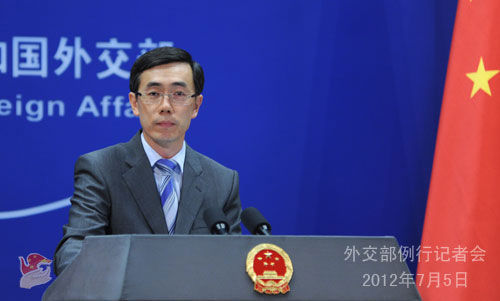 2012年7月5日,外交部發(fā)言人劉為民主持例行記者會。