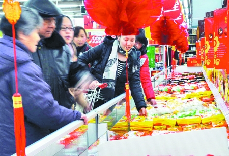 元宵節(jié)臨近,超市中湯圓開始熱銷。