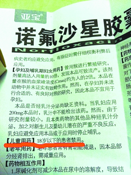 “我的孩子四五歲時(shí)經(jīng)常拉肚子,聽朋友說(shuō)吃諾氟沙星管用,我就給孩子吃了這藥,前后共吃了十多粒。孩子現(xiàn)在身高明顯比同學(xué)矮許多。有什么補(bǔ)救措施嗎?做媽的后悔莫及。求懂醫(yī)的解答!”近日,一名叫“胡說(shuō)的西紅柿”的網(wǎng)友在某論壇發(fā)帖求助。