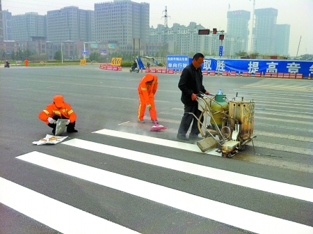 鄭州交巡警八大隊(duì)副大隊(duì)長吳永軍稱,一條道路標(biāo)線的更新周期為一年,對于一些容易磨損的路口路段,還要根據(jù)實(shí)際情況定期或不定期進(jìn)行更新完善。此次重新劃定的交通標(biāo)線涉及鄭州市43條道路,面積達(dá)7.5萬平方米,主要是對路段模糊標(biāo)線進(jìn)行重新補(bǔ)線及增加新的標(biāo)線。據(jù)了解,此次施劃的主要道路有紫荊山南路(航海路-紫東路)、大學(xué)南路(航海路-南三環(huán))、經(jīng)三路(金水路-農(nóng)業(yè)路)、東風(fēng)路(沙口路-花園路)、三全路(江山路-中州大道)、中州大道(石化路-南三環(huán))等。