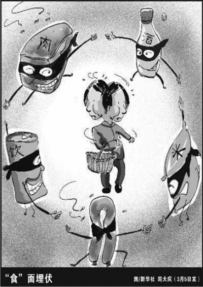 “早上喝一杯三聚氰胺牛奶,吃兩個染色饅頭,夾一截瘦肉精火腿,切一個蘇丹紅咸蛋;到中午了,買一條用避孕藥喂的魚……”這是網(wǎng)上流行的一個段子,雖然有些夸張,但也表現(xiàn)出網(wǎng)友對食品安全的憂慮。