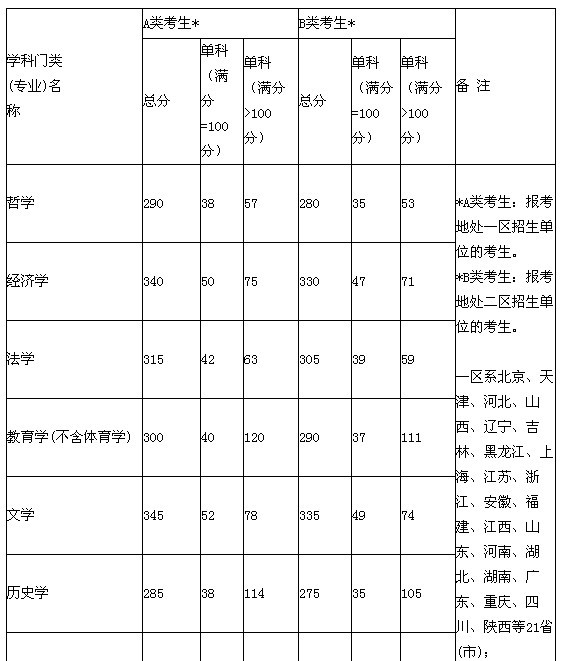 2012年全國碩士研究生招生考試考生進入復試的初試成績基本要求(學術型學位類)
