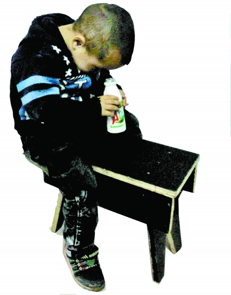 小劉浩有自閉癥的典型特征,一個瓶子他能坐在凳子上玩半天而且非常認真。