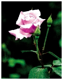 月季 小葉少,3~5片,但小葉較大,長2.5~6.0厘米。葉面較平,不凹陷,無皺紋。枝直立 ,刺少, 新枝的枝端都有花。